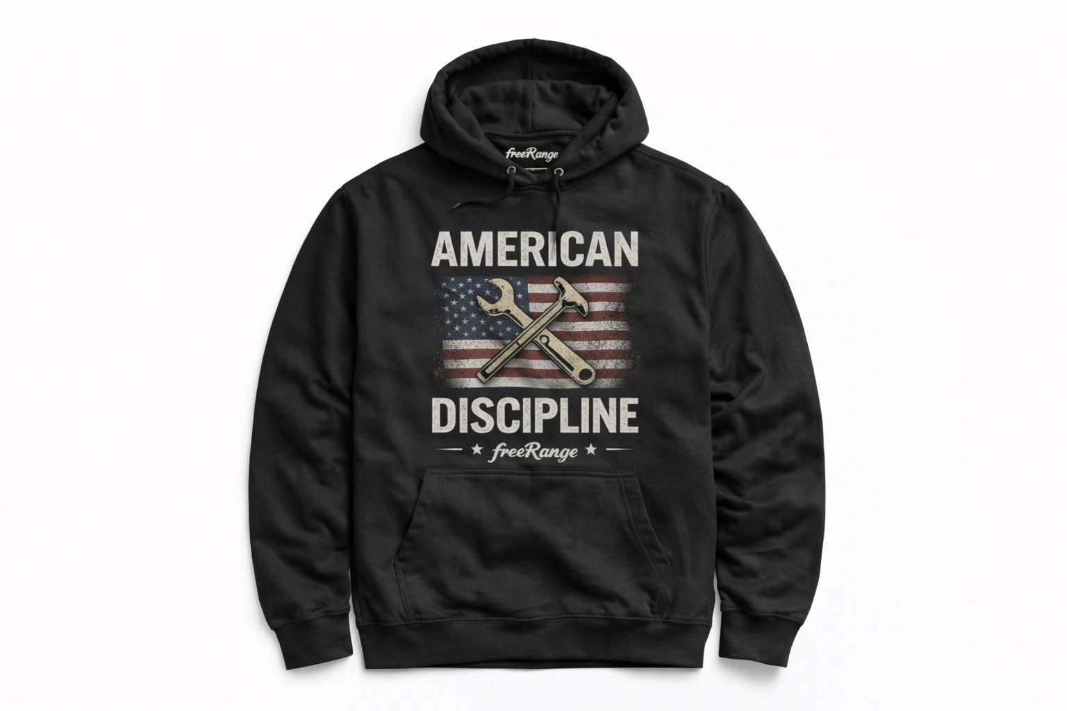 The American Discipline Hoodie represents work ethic, responsibility, and earned pride. Featuring a bold front graphic with crossed tools layered over a distressed American flag, this design stands for those who build, fix, protect, and show up daily.